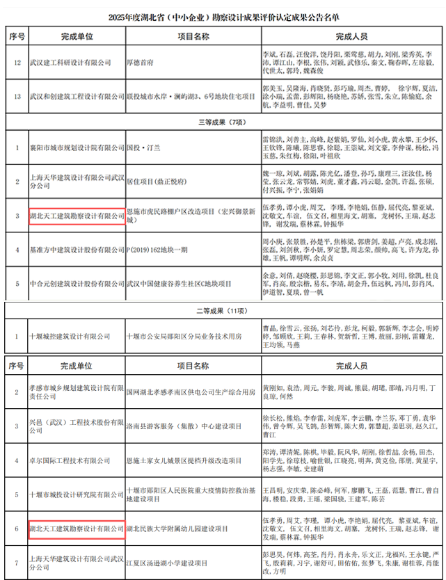 喜報│天工設計院獲2025年度湖北?。ㄖ行∑髽I)勘察設計成果獎